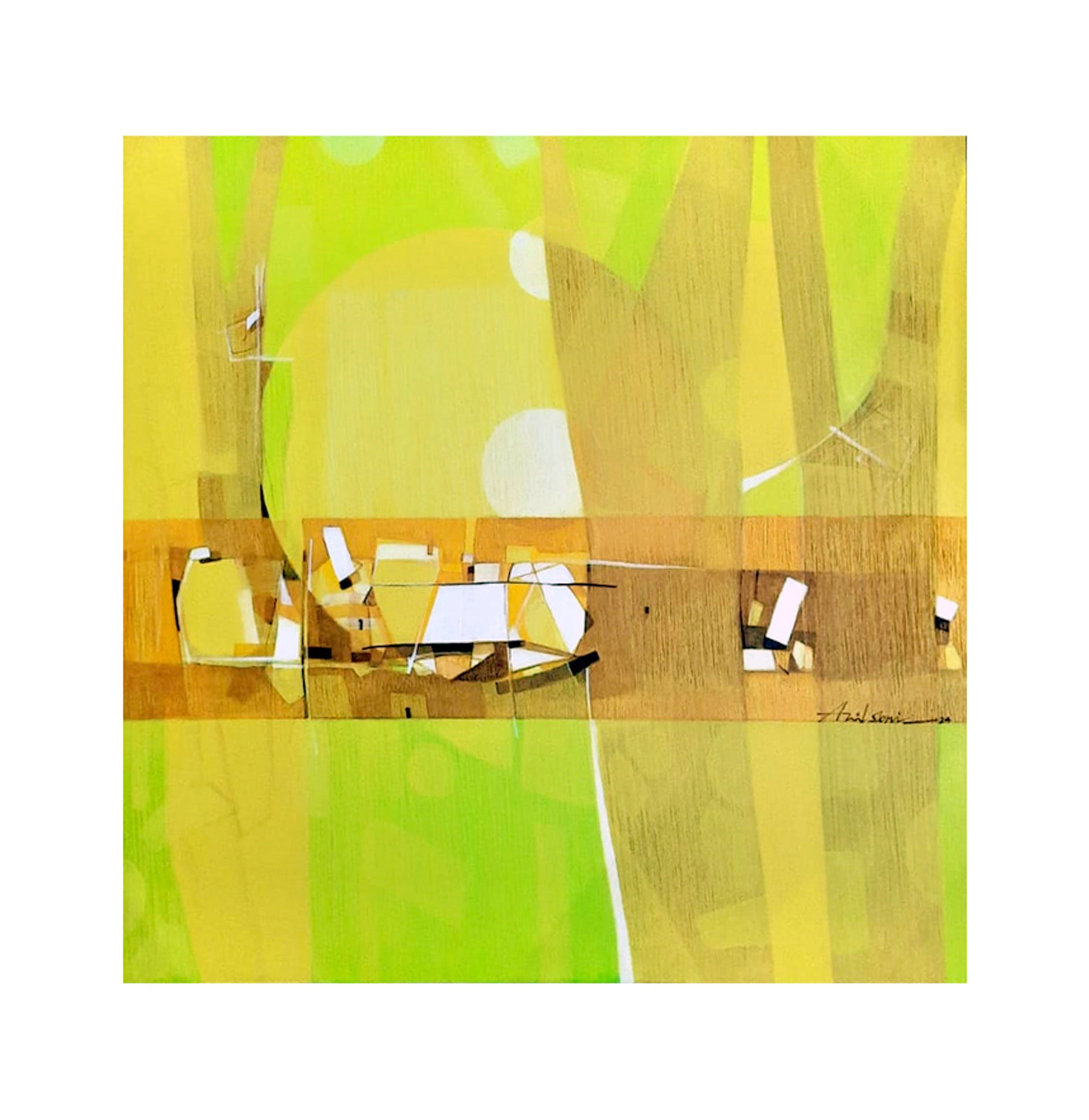 Anil Soni's artistic journey began with illustrative forms, vibrant colors, and rich visual beauty. However, as he delved deeper into his subjects, his vision evolved to embrace greater subtlety and depth. He aimed to introduce new dimensions and perspectives in his work, portraying natural scenes like trees, rivers, and the interplay of light and shadow in a distinct and personal way. Anil found that abstract forms provided him with a freedom of expression that tangible forms often cou... Read More