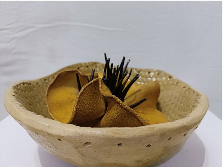 A ceramic series of ' growth ' that is based on a fruit POMEGRANATE. In that series, I have tried to show every stage of Pomegranate related to human life. The following sculptures are a part of an experiment wherein I explored the medium of barbed wires and nails along with few other objects.
