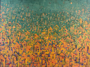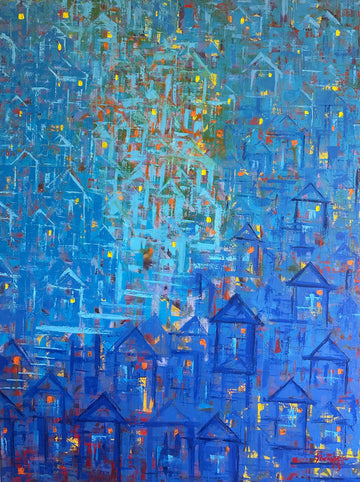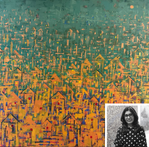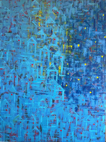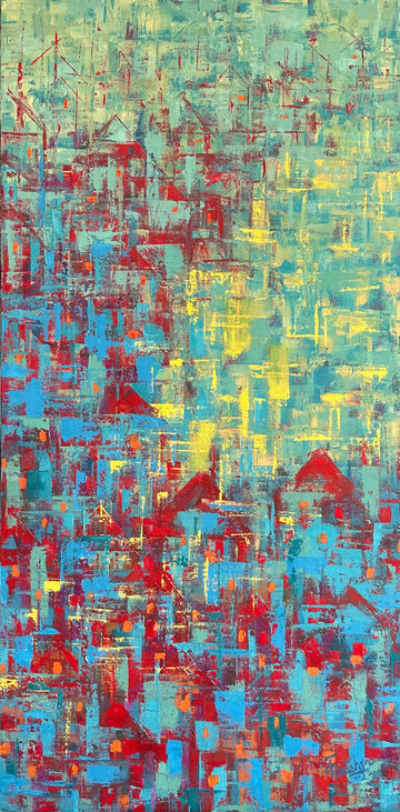 Her "Opus" paintings are an abstract representation of cityscapes. The name "Opus" refers to large-scale compositions. The paintings are inspired by the artist's travels across the world, with each work meant to capture the unique character of the city it depicts.