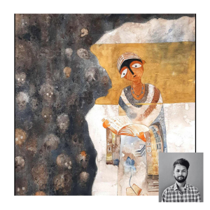 My artistic inspiration springs from the detailed goddess idol of my hometown, Subajni village, celebrated for its goddess worship tradition. The village's rich heritage of myths and stories ignites my creativity. In my paintings, I capture rural life's essence and mythological narratives, paying homage to the holy goddess statue, with figures featuring purposeful downward gazes to reflect deep spiritual devotion. Every brushstroke and hue in my art represents the personal tales that define my artistry.