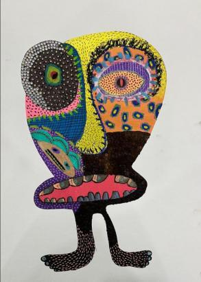 Ketiya Bhandecha is a multidisciplinary artist whose work reflects personal experience, emotional memory, and the energy of her environment. Psychedelic in tone and layered with meaning, her practice often involves discarded materials, neon colors, and decorative craft elements.