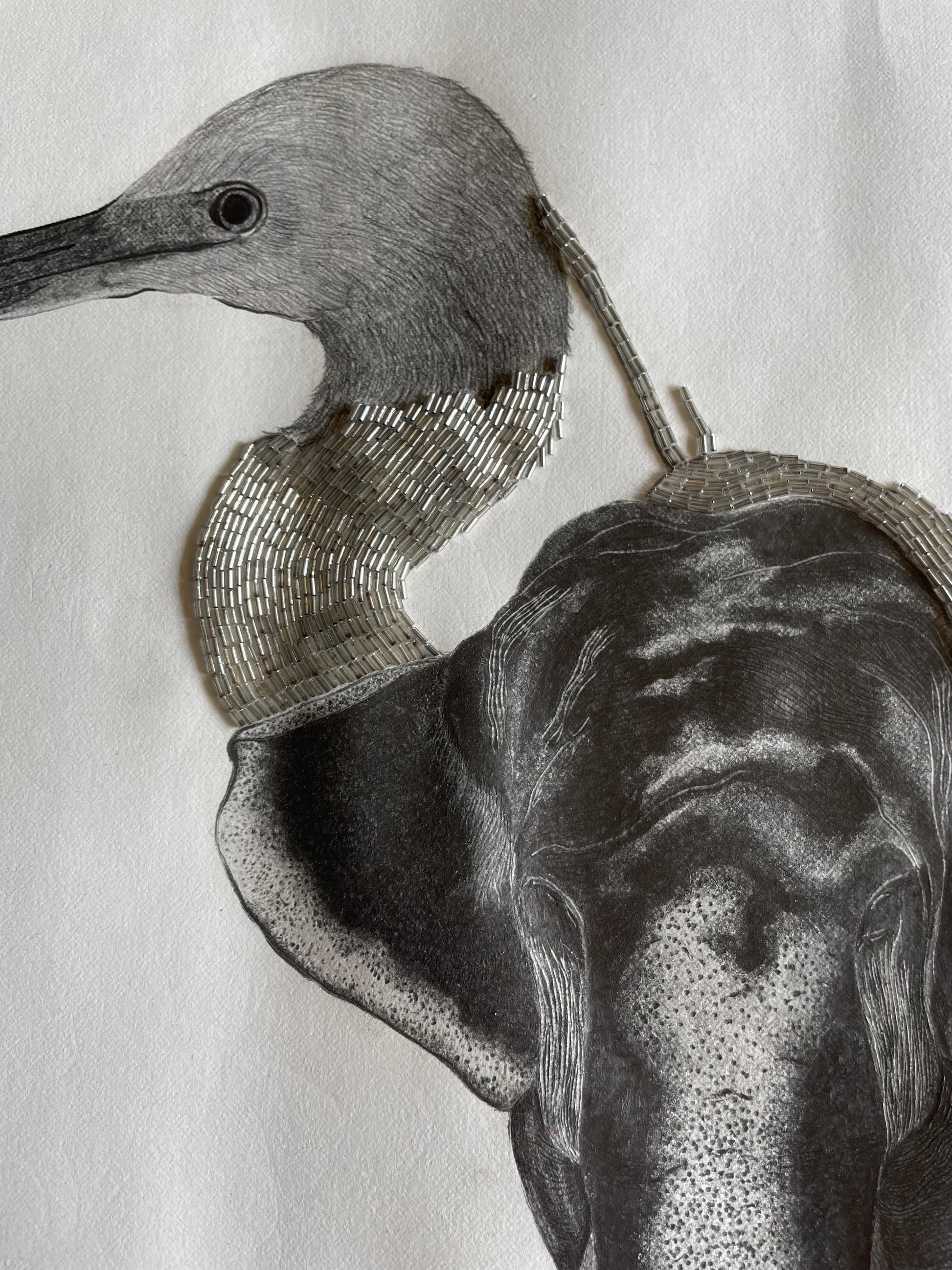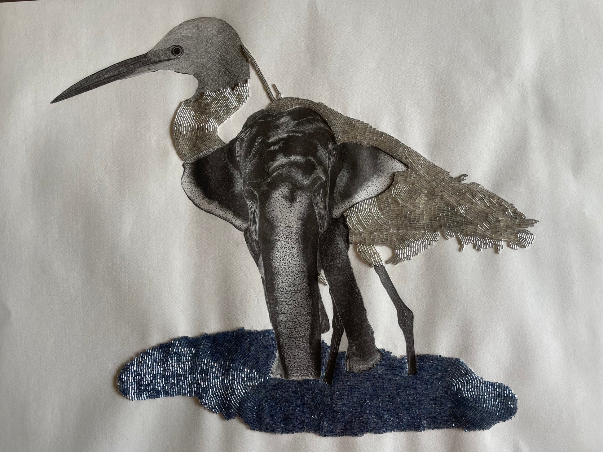 This artwork highlights the quiet harmony between egrets and elephants — two very different species that coexist beautifully. While elephants are known for their size and strength, the humble cattle egret plays an essential role by freeing them from ticks and parasites, contributing to their wellbeing. Their unspoken understanding reflects the balance and cooperation found in nature — something humanity often forgets. Through this piece, I question why we struggle to live in such harmony. Why can’t we respect natural habitats, adopt eco-friendly habits, and create greener cities instead of encroaching on forests? The work is a reminder that peaceful coexistence with nature isn’t beyond us — it begins with awareness and small, thoughtful steps.