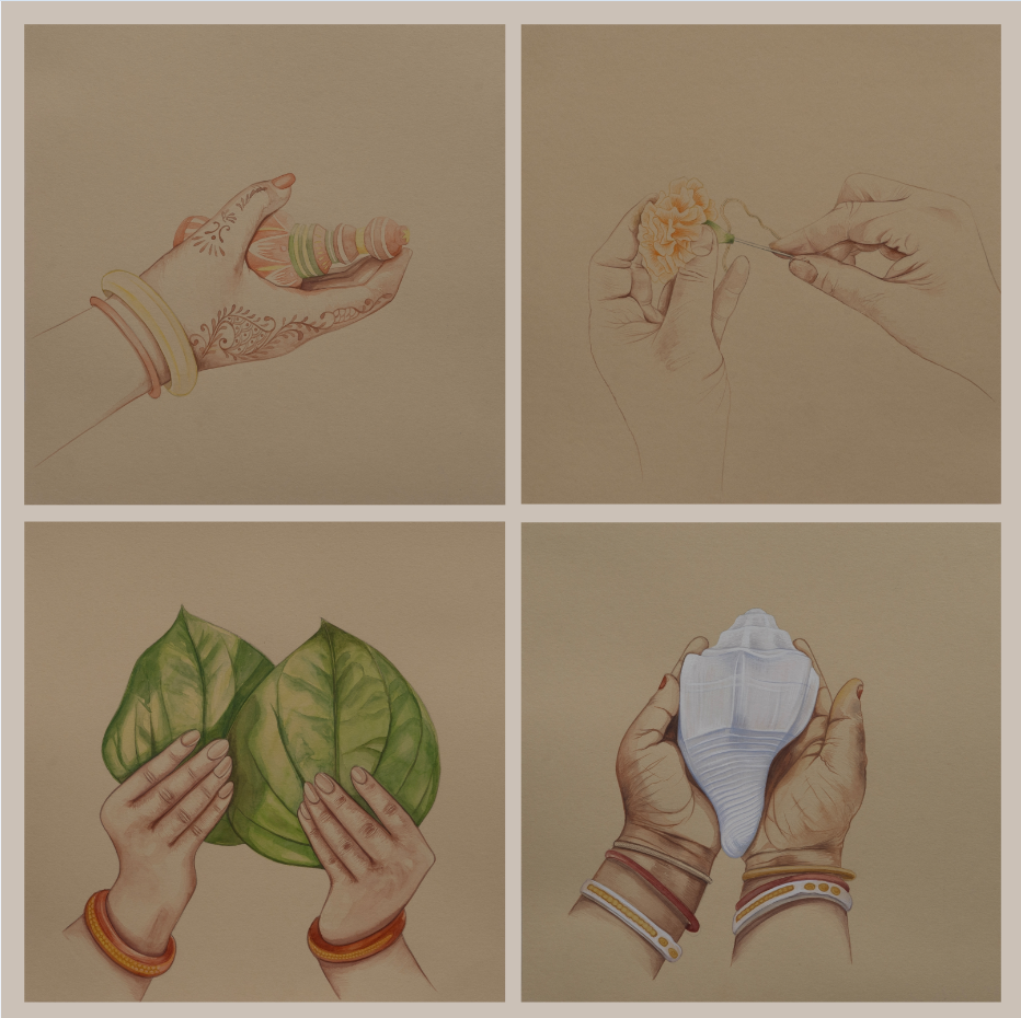 Inspired by Bengali culture, this series captures everyday gestures and rituals of faith, care, and offering. The simplicity of hands in action becomes a quiet reflection on tradition and belonging.