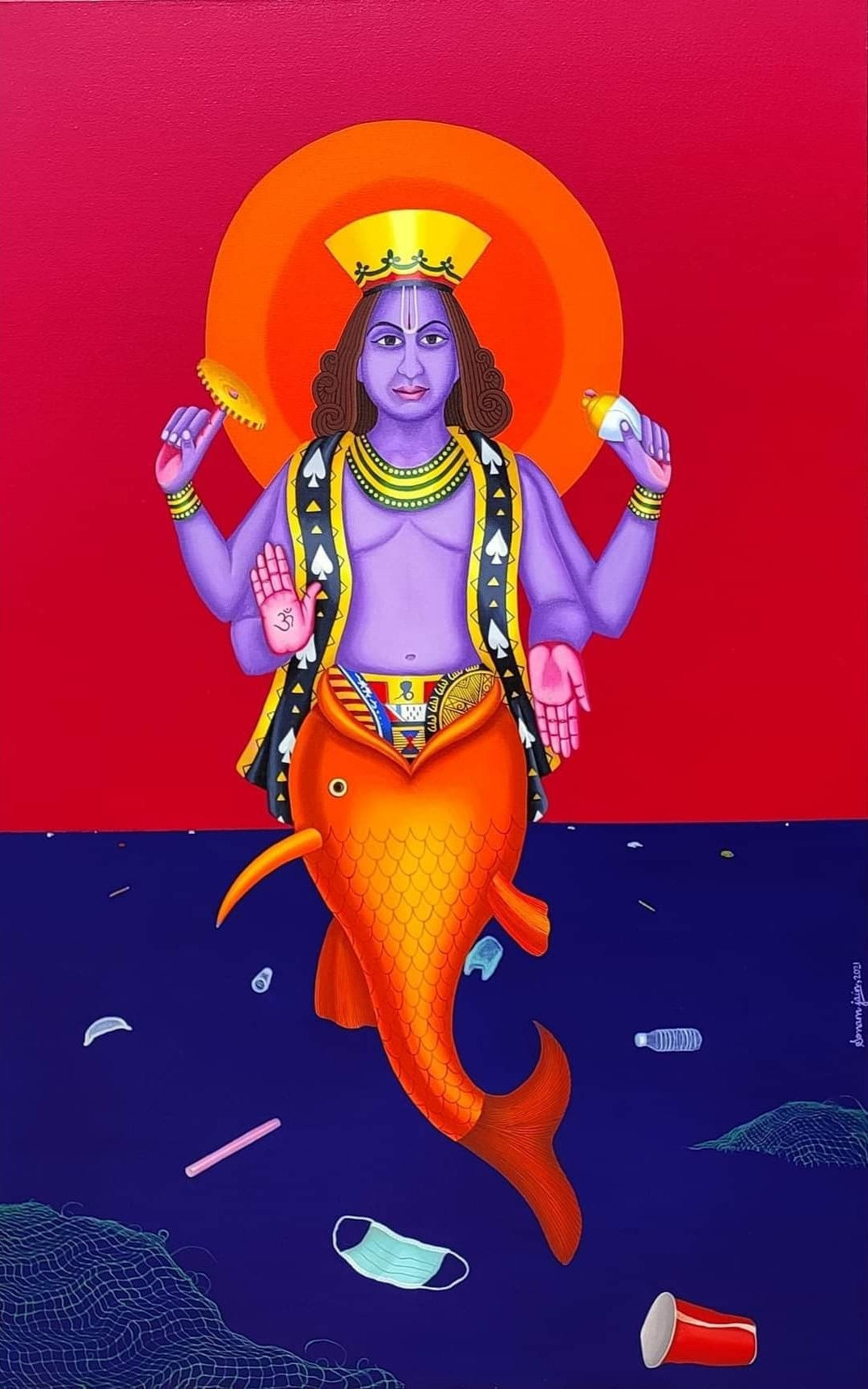 Abir Space is offering the artwork - Matsya Avatar created by Sonam Jain, available for purchase at Rs. 1,07,692. Original Artwork: Acrylic on canvas. Size is 42"x60".