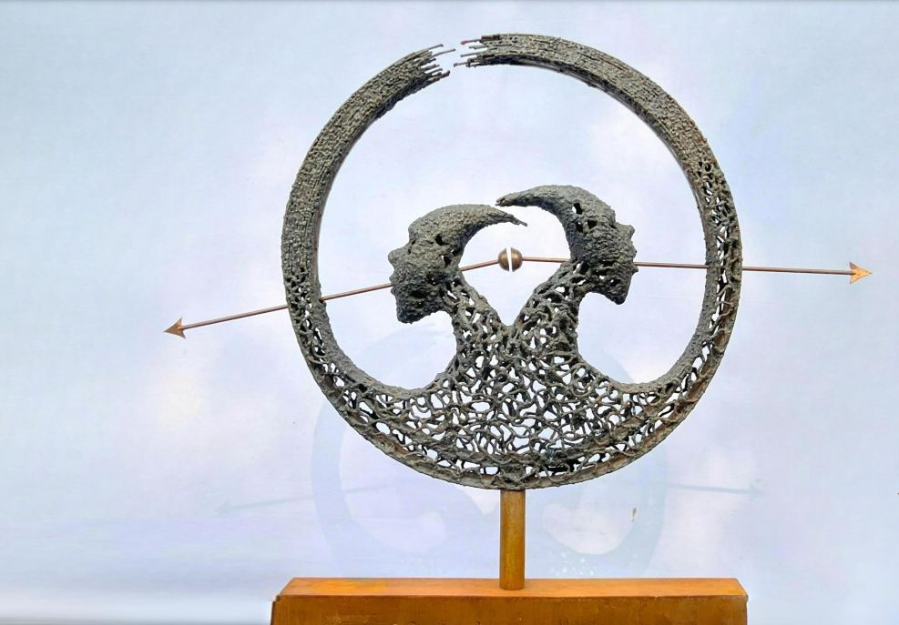 “Prahaar” (meaning strike or impact) captures the moment of force and resistance. Angular metal forms express aggression, power, and resilience. The contrast between iron and copper