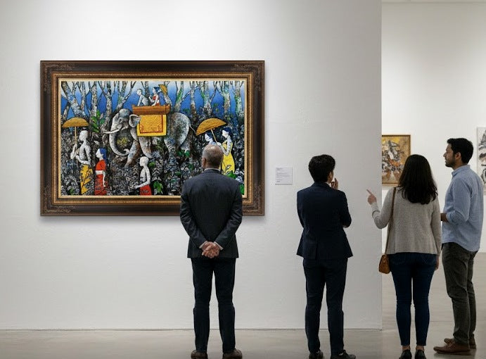 Upon finishing my art education, I began an intense quest to find my own flair in creating figures and blending colours. ‘Red’, my first show, was an experimentative series of different shades of red - vermillion, scarlet, crimson and maroon - using acrylic on handmade paper. The experiment was figurative as well as abstract. The appreciation I had received inspired me to work on two more series, ‘Blue’ and ‘White’. ‘Blue’ used oil on canvas and predominantly had cobalt, marine, Prussian s... Read More