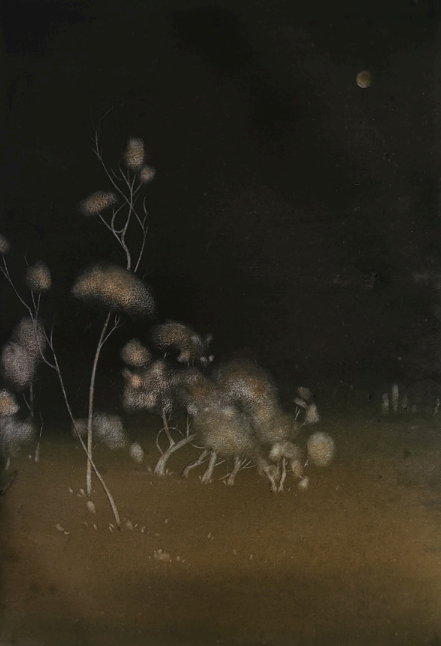 Gautam Kumar’s practice is rooted in close observation of nature and its calming presence. His paintings depict both animate and inanimate forms found in everyday surroundings. Drawn to darker tones, he often captures the beauty of nature at night, using color to express varied moods and situations beyond literal appearance. For him, painting is a way to explore inner creativity and translate nature into a quiet, poetic expression of thought and feeling.