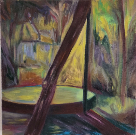 This is an ongoing series of oil and watercolour landscapes primarily drawn from memories of a park and the interiors of a home. This series emphasizes the gradual shifts and turns that occur in built-natural environments like parks and gardens, which serve a major role in a city’s ecosystem. The idea is to reflect on the subtleties of how gradually the built environment around us is shifting and how the natural environment is coping and adjusting with it, also trying to keep the leisurely needs and wants of the society into consideration.