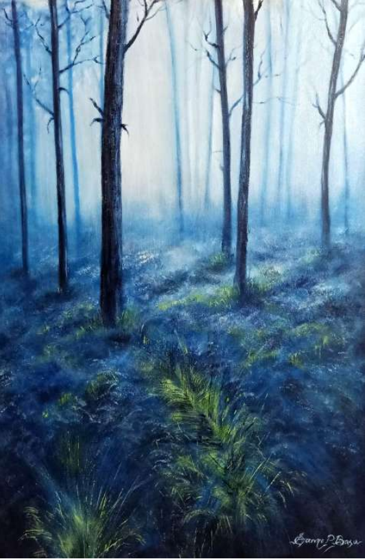Suvvro P Basu’s practice blends Abstract Realism and Impressionism, with oil painting at its core. Inspired by the outdoors, he draws from landscapes, light, and the raw presence of nature. His works merge abstract design with realistic subjects, using light, shadow, color, and texture to shape each piece. For him, art is a path of joy and self-discovery, an ongoing effort to share the quiet poetry he finds in the natural world.